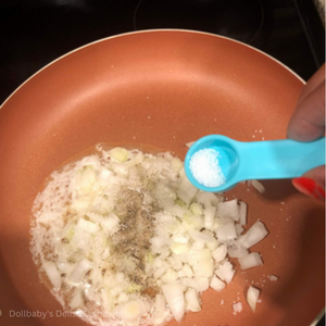 Preheat frying pan to melt 1 tablespoon of butter. Chop up the onion and garlic and season with kosher salt and black pepper. Sauté onions and garlic until tender. Add in the ground turkey or ground beef.