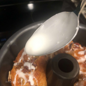 Step 4 Bake in an oven at 350°F for 20-25 minutes or until golden brown. Allow the Pecan Ring to cool and drizzle glaze icing. Ready to serve.