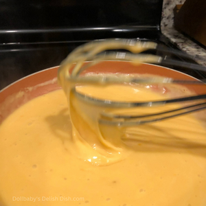 Step 3 Next, add gouda and cheddar cheese. Lower the heat and, whisk and cheese melts.
