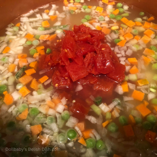 Add in the Rotel diced tomatoes with chiles for a little heat.
