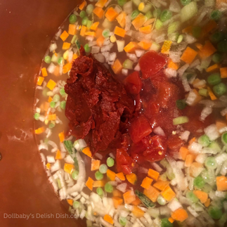 When you are creating your soup any vegetable will work. For this recipe I used frozen mixed vegetables I found in my freezer, chicken broth, tomato paste, Rotel diced tomatoes with chiles, potatoes, onions, celery, basil, oregano, salt and pepper to taste. The chiles gave the soup a little heat but, oh so satisfying to the taste buds. Sometimes you just want something to warm the soul. Hardy, healthy and yummy to the tummy.